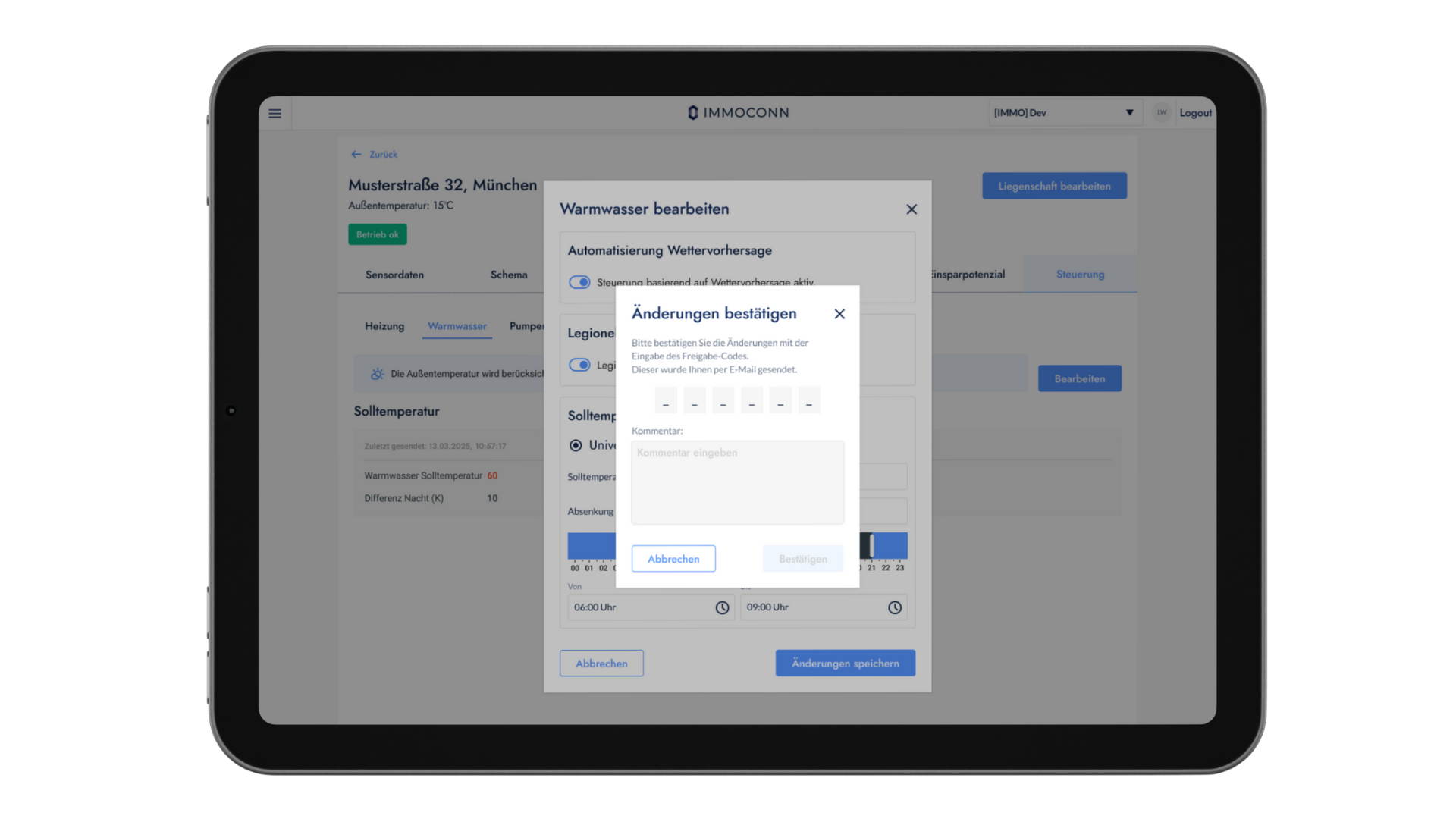 Immoconn betreibt seine Rechenzentren ausschließlich in Deutschland. Durch eine eigene APN und ein geschlossenes VPN ist der Datenverkehr vollständig geschützt. Bei der Fernsteuerung der Heizung über das Internet wird jede Änderung automatisch protokolliert – für maximale Transparenz und Nachvollziehbarkeit.