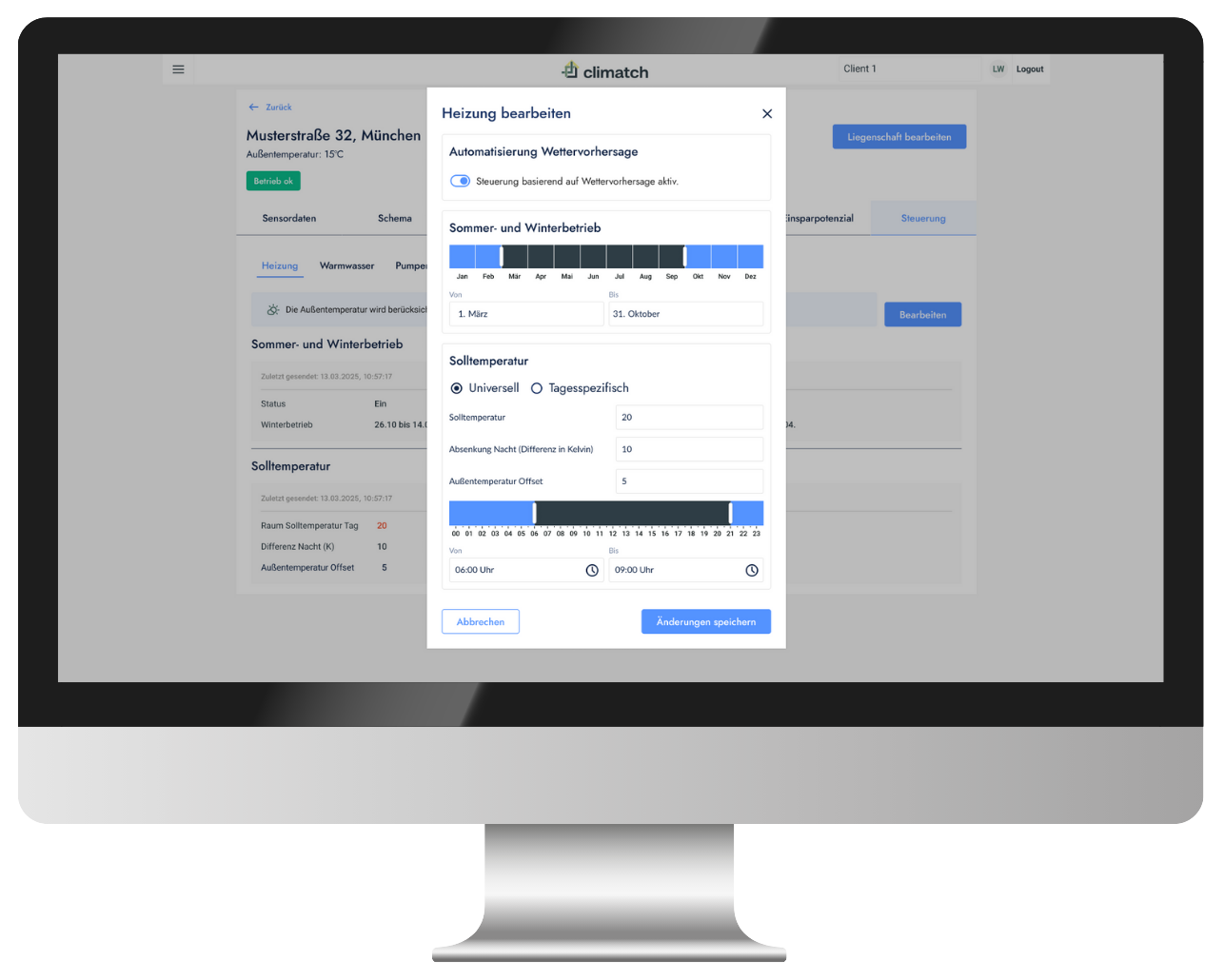 Unsere Lösung ist darauf spezialisiert, Heizungsanlagen in Bestandsgebäuden und Liegenschaften mit Zentralheizung zu optimieren. Da jedes Gebäude anders ist und jede Heizung anders „tickt“, entwickeln wir gemeinsam mit Ihnen ein angepasstes Steuerungskonzept. Dank der „Bulk Operations“-Funktion können Sie zudem mehrere Anlagen unterschiedlichen Typs und Herstellers gleichzeitig anpassen, was besonders für größere Portfolios ideal ist.