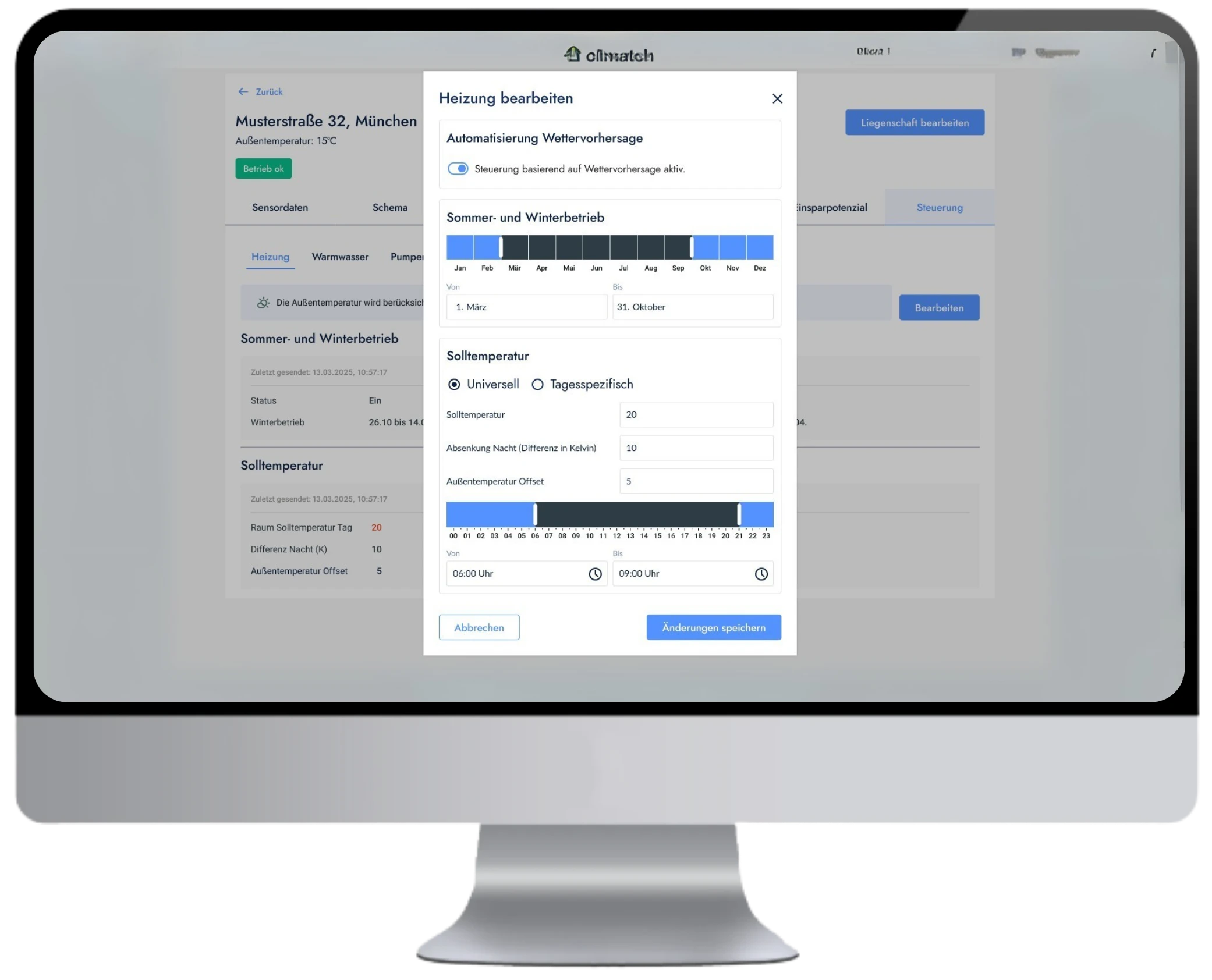 - Automatische Anpassung der Heizungseinstellungen basierend auf Wettervorhersagen am Standort